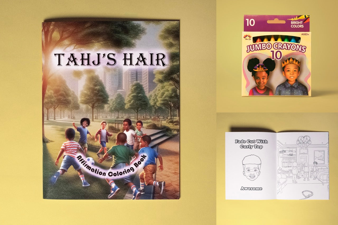 This bundle offers a comprehensive hair affirmation experience, featuring a coloring book and bespoke crayons. Experience the therapeutic benefits of affirmations and artistic expression while exploring the beauty of diverse hairstyles. As a vital resource for fostering self-love and acceptance, this bundle has the potential to unleash a child's creativity and enhance their self-worth. Special editions that honor our Afro-Latino community, Vitiligo, Albinism, Down Syndrome, and Autism encourage children to celebrate their uniqueness, supporting inclusivity and self-assurance for future generations.